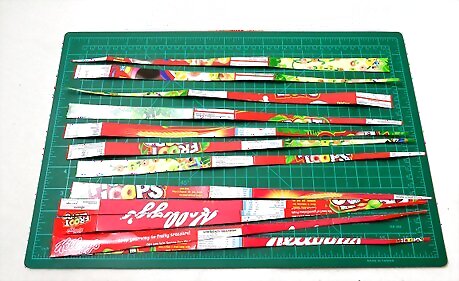 Make strips of cardboard. On the inside of the box (the side with nothing printed on it), use a ruler and mark your strips. Draw strips that are ¾ of an inch (2 cm) on one end and 1/8 (3.18 mm) of an inch on the other. Once you have drawn all of your strips, cut them out with a pair of scissors.