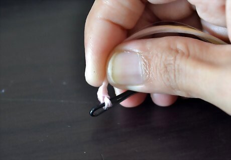 Double-knot the thread around the bobby pin with the excess ribbon that was left on the opposite side of your streak, after you glued it in. You may also glue the excess thread to the streak, as long as the streak is held in place, it should be fine. if you used glue in this step, allow time to dry.