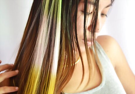 Put your streak in the desired area of your hair. If you decide you want to change your color, it should be easy to wash out the color and add extra glue if needed. You can then change the color of the streak.