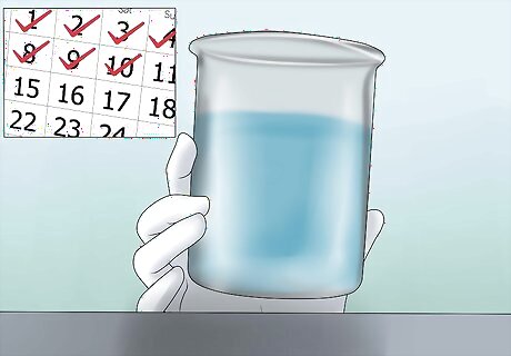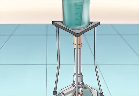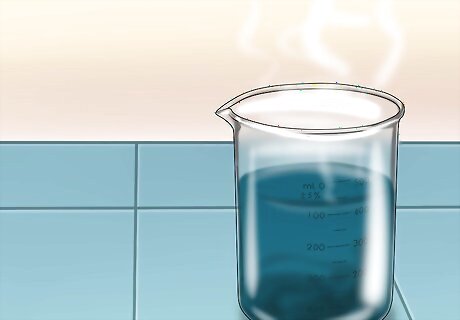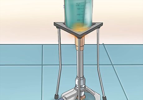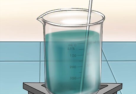 Leave the beaker in a warm place where it will not be disturbed for a week or more. As the water evaporates, you will see the crystals beginning to form. This evaporative crystallization method may take a few weeks depending on how warm the area where the beaker is being stored is. Well-formed crystals will grow. You can also heat the solution over a Bunsen burner until one half to two thirds of the water has evaporated. Allow the solution to cool. This cooling crystallization method will most likely result in irregularly shaped crystals.