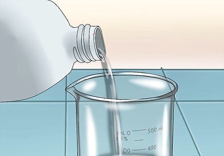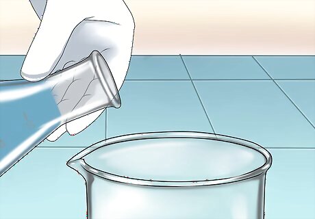 Pour the sulfuric acid into the glass beaker. Heat the solution until it is almost boiling.