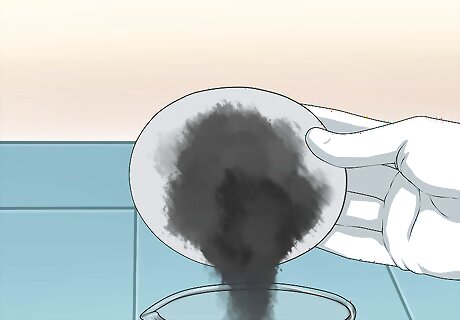 Continue to heat the solution after the last piece of copper oxide has been added. You want to ensure that the chemical reaction has occurred. This may take 1 to 2 minutes. The solution will look cloudy with a black powder.