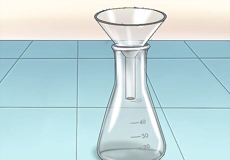 Swirl the solution by gently moving the beaker in a circular direction. Pour the solution into the filter funnel.