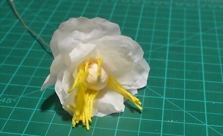 Wrap the top of the main stem with green florist's tape. Start wrapping at the base of the bloom. Continue wrapping the tape, overlapping each layer slightly, for about 4 inches (10.16 centimeters). Tear off the tape, and leave the bottom of the stem intact.