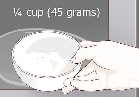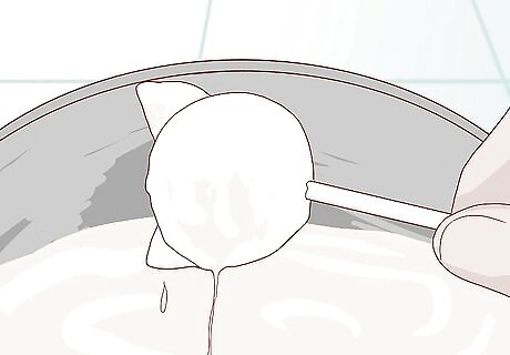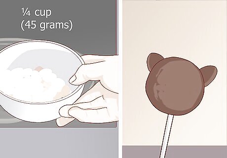 Melt ¼ cup (45 grams) of the candy coating in the microwave. Put the candy coating into a small, microwave-safe bowl, then melt it according to the instructions on the package. Each brand may be a little different. In general, however, you'll be asked to melt the candy on medium power at 30-second intervals, stirring between each interval. Do not overcook the chocolate coating, or it will scorch. You will melt the rest of the chocolate later. This is just to attach the lollipop sticks.