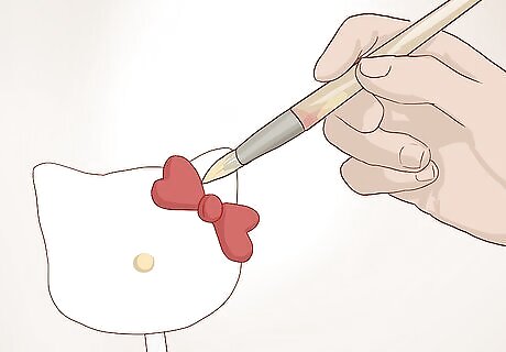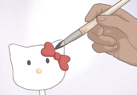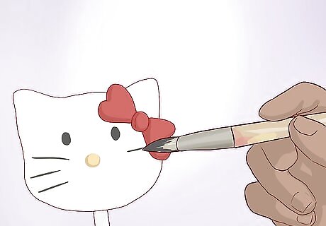 Draw the whiskers. Using a thin paintbrush and dark food coloring, draw three whiskers on each side of Hello Kitty's face. Make them short, and as close to the edge of the face as you can. Don't let them touch the nose or eyes! You can also draw the whiskers on using a black, edible ink pen.