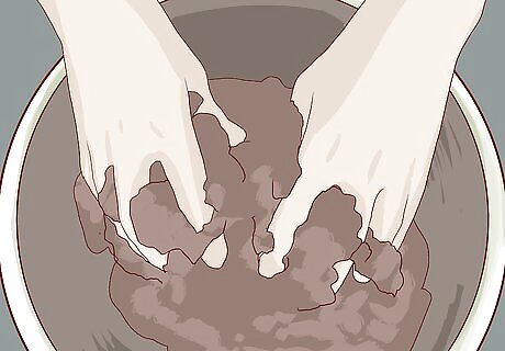 Crumble the cake in a large bowl. Use your hands to do this. Keep crumbling the cake until there are no large chunks left. Be careful not to squish the cake into dough, however.