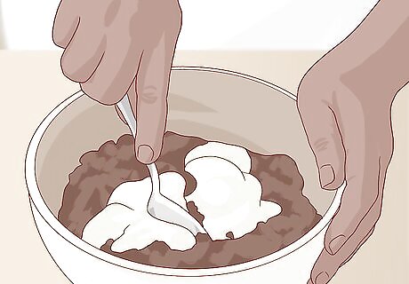 Gently mix in 1 to 1½ cups (225 to 340 grams) of the frosting into the crumbled cake. Use a rubber spatula or the back of a metal spoon to do this. Don't use all of the frosting. If you use too much, your cake balls will be too mushy and won't hold their form.