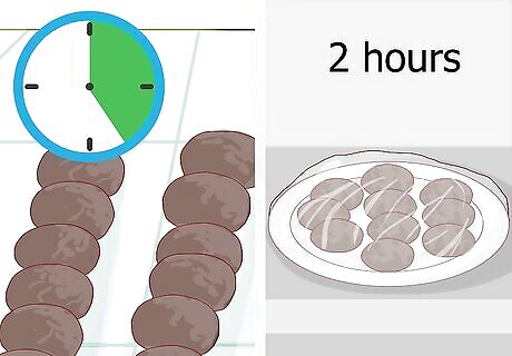 Let the cake balls rest for 20 minutes, then cover them with plastic wrap, and chill them in the fridge for at least 2 hours. Cover a large baking sheet with wax paper, then place the cake balls on top. Make sure that you leave some space between each cake ball. Let them rest for 20 minutes, then cover them with a sheet of plastic wrap, and put them into the fridge for at least 2 hours. Be gentle with the plastic wrap so that you don't squish the cake balls. Don't cram the cake balls onto the baking sheet. If they won't fit, use a second baking sheet.