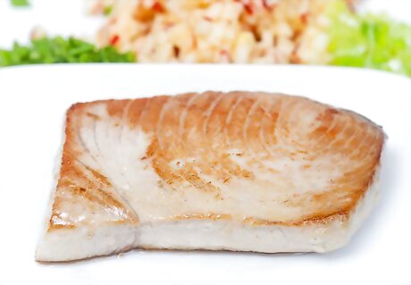 Feed your baby fish. Traditionally, parents were advised to avoid feeding their baby fish and other potentially allergenic foods until they were at least a year old. Thinking on this subject, however, has recently changed. A study published in 2008 by the American Academy of Pediatrics stated that it's safe to feed these foods to babies over the age of 6 months, provided they show no signs of allergies (food or otherwise), don't suffer from asthma and have no family history of either. Therefore, you should consider feeding your baby fish like salmon, which is full of healthy fats and is highly nutritious. Try simmering the salmon in a pot of lightly seasoned water until it's fully cooked. Allow it to cool before pureeing (for younger babies), mashing into a bowl of carrots or other vegetables, or simply breaking it up into small chunks (for older babies).