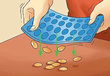 Allow the cough drops to cool in the candy molds completely. This will take an hour or more. When the cough drops are cool, crack them out of the molds onto wax paper. To crack the drops out of the candy molds, tap the mold gently on a hard surface. The cough drops should fall out. You may have to bend the candy mold tray in order to get the cough drops out, similar to cracking ice.