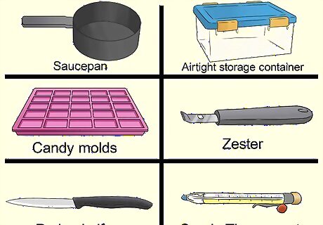 Gather your supplies. For this recipe you will need the following items: Paring knife Zester Saucepan Candy thermometer Candy molds Airtight storage container.