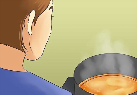 Make a strong herbal tea. There are several suggestions for herbal medicines that are effective at treating coughs and colds. Elderberry and elderflower has been used to relieve congestion. Slippery elm has been traditionally used by Native Americans to treat coughs and gastrointestinal conditions. Chamomile may be an effective treatment for coughs as it can help to reduce inflammation and mucus production. To make a strong tea, place a generous pinch of each herb into a cup of water in a saucepan. Heat the water and herbs to a simmer on high heat, then cover and reduce the heat. Let the tea steep for 15 to 20 minutes over the lowest heat. Strain out the herbs and reserve 1/2 cup of the tea for the cough drops.