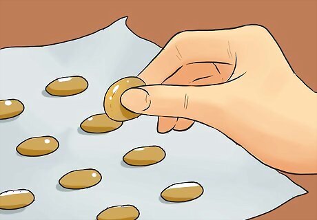 Roll small portions of the lozenge dough into small balls. These should be roughly the size of a teaspoon. Place these on a sheet of wax paper or parchment. You can lay this on a counter or a baking sheet. Place the lozenges in an area where they won't be disturbed. These cough lozenges may not be very attractive but they contain effective ingredients.