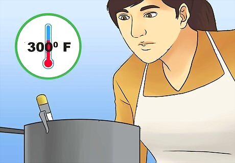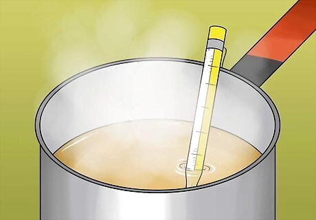 Place a candy thermometer into the mixture in the saucepan and stop stirring. You will use this to monitor the heat. The candy liquid will need to be heated to a high temperature in order to harden into lozenges. It is very important that you closely watch the temperature of the syrup so it doesn't burn onto the saucepan or become too hot to form hard cough drops. The goal temperature for hard-crack lozenges is 300-305 degrees Fahrenheit.