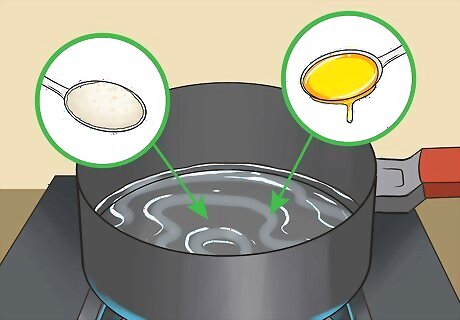 Add 1.5 cups of sugar and 1/2 honey to the spiced liquid. Bring this mixture to a boil over high heat, stirring constantly. Honey has been studied in clinical trials. It has been proven to be as effective as cough syrup in suppressing coughs. You will want the sugar to dissolve. You can tell if the sugar is dissolved if you take a spoon of the liquid and cannot see any grains of sugar in it. Once the sugar is dissolved, you will use a candy thermometer to get this syrup to the hard-crack candy stage.