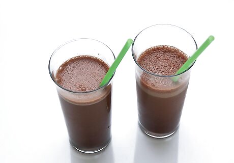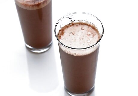 Blend the classic mocha smoothies. Put the lid on the blender and blitz the smoothies until the ice is completely blended and the ingredients are combined. Remove the lid and pour the smoothies into two large glasses. Serve the smoothies immediately before they begin to separate. Consider garnishing the classic mocha smoothies with a drizzle of chocolate syrup.