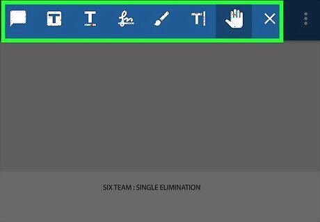 Make notes on your PDF. You can use the tools in the toolbar at the top of the screen to type and draw on your document. Here are some options: To draw on a PDF, select the paintbrush from the top menu, then drag your finger on the screen to create a brush stroke. To make a comment, select the T in the square icon and tap a word in the document, then tap the speech bubble in the menu that appears. To insert text, tap the T| icon in the upper menu, tap where you would like to start your text. You can tap on the blue arrow to open a text box so you can easily see what you’re typing.