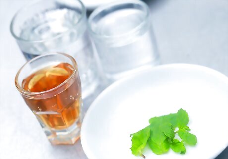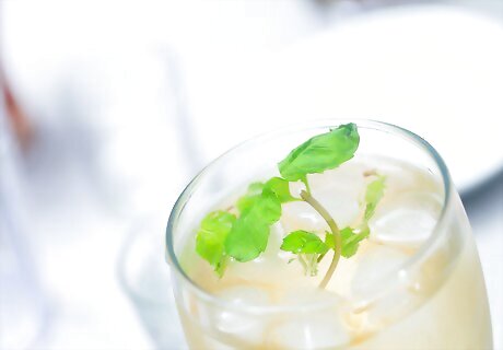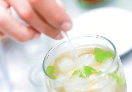 Crush mint leaves with the sugar syrup and water in a highball glass. This will let the mint flavor flow.