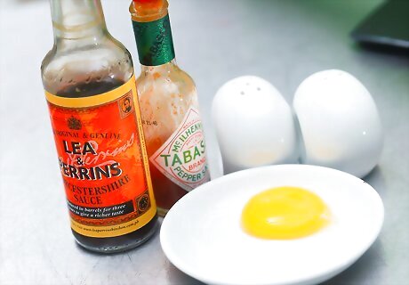 Gather ingredients. You'll need 1 raw egg yolk, 1 teaspoon Worcestershire sauce, salt and pepper to taste and 2 dashes of Tabasco sauce (or other hot sauce you like).