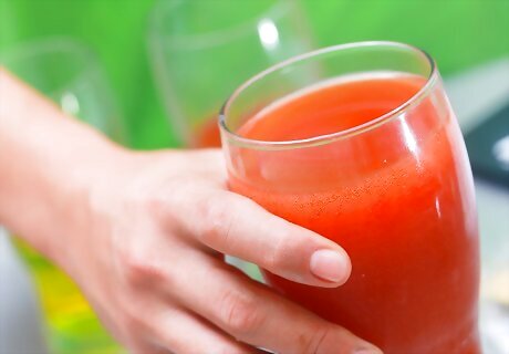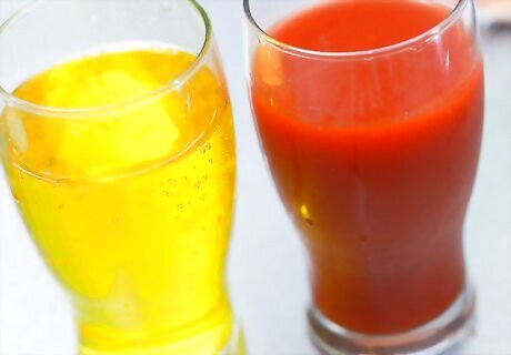 Assemble ingredients. You'll need even amounts of beer and tomato juice, both chilled.
