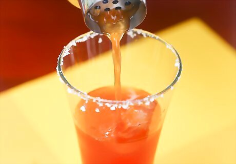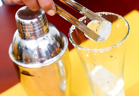 Dip the rims of the glasses in coarse salt. The salt will stick to the lime juice and will coat the rims.