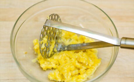 Mash the bananas. Peel three large bananas and set them in a mixing bowl. Mash the bananas with a potato masher, rubber spatula, or fork until they're completely smooth. Stir in 2 tablespoons of lemon juice and set the mixture aside. The lemon juice will prevent the bananas from browning a lot and give a slight citrus flavor to the cupcakes.