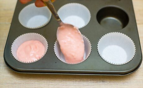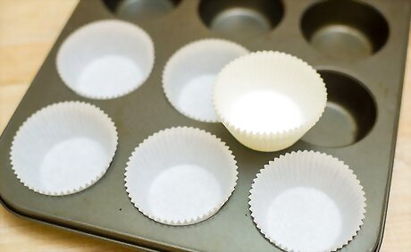 Preheat the oven and line the muffin tins. Turn on the oven to 350 degrees F (176 C). Place cupcake liners into two muffin tins so you'll have enough for 24 strawberry banana cupcakes. If you don't have liners, you could just spray the muffin tins with baking spray or you could grease and flour the tins.
