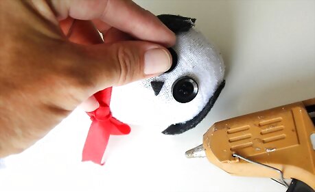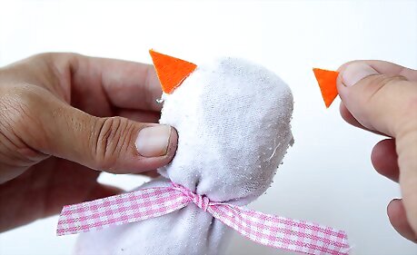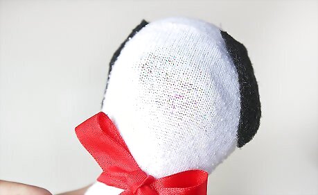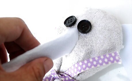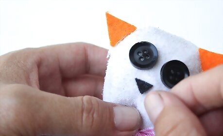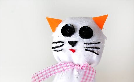 Cut facial features out of black sock so that they can stand out. You can cut out two eyes, a triangular nose, and a mouth. The mouth can be smiling, in a :3 shape, or none at all! You could even use buttons for the eyes!