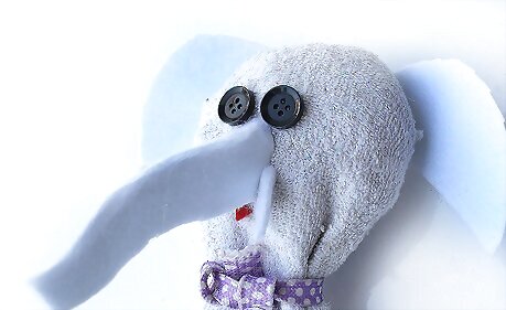 Add your animal's facial features or details. Cut them out of another sock or fabric scraps. Glue/sew them on your animal.