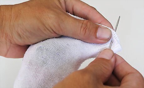 Take a sock and stuff it full of old fabric scraps, tissues, or stuffing. Sew the end so it is secure.