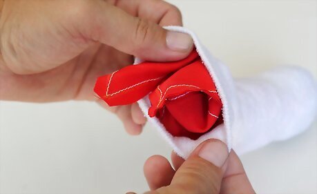 Tie a ribbon about to separate the head from the body. You should tie the ribbon so that the head is one fourth the size of the whole body. You may sew the ribbon in place, or leave it so that it can be removed.
