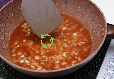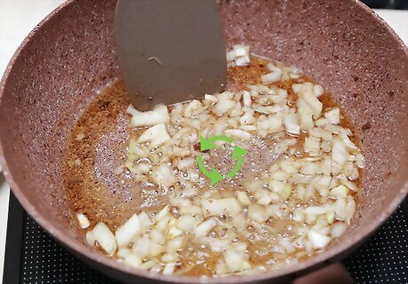 Fry the onion in a medium-sized saucepan. Pour 1 tablespoon (15 milliliters) of vegetable oil into a medium-sized saucepan and let it heat up over medium heat. Once the oil is hot, add the onion, and let it cook until it turns soft. Stir it occasionally with a spatula to prevent burning.