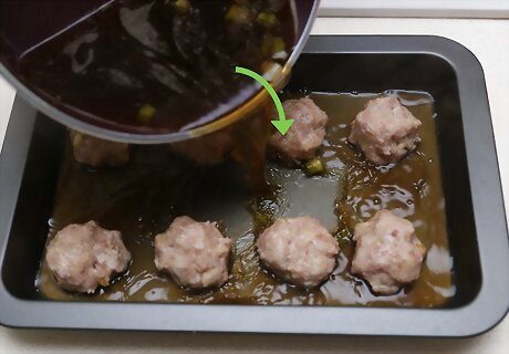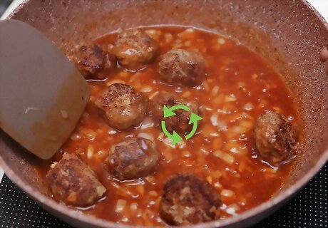 Pour the sauce over the meatballs. Gently turn the meatballs with a spoon so that they get evenly coated with the sauce.