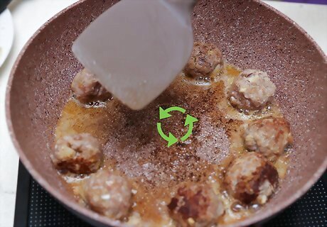 Fry the meatballs until they turn golden-brown. Pour 2 tablespoons (30 milliliters) of vegetable oil into a large skillet, and let it heat up over medium heat. Once the oil is hot, add the meatballs, and fry them until they turn golden-brown. Don't worry if they aren't cooked through; you will continue cooking them in the sauce later on.