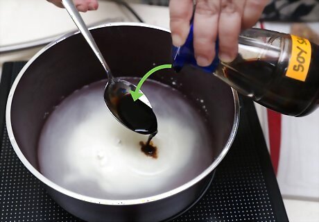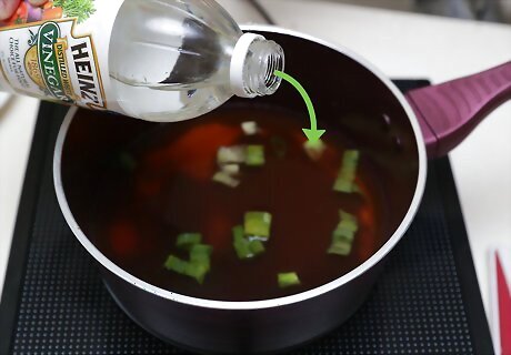 Stir in the water, vinegar, soy sauce, brown sugar, and cornstarch. Pour ⅓ cup (80 milliliters) of water into the skillet, then add the vinegar, soy sauce, brown sugar, and cornstarch. Stir the ingredients together with a mini whisk or fork until everything is combined.