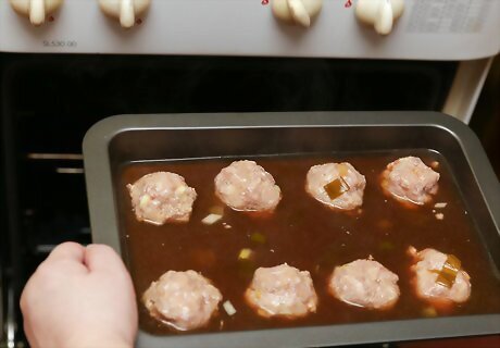 Bake the meatballs, uncovered, for 1 hour. The meatballs are done when they are no longer pink inside. If they are still not done, bake them for another 30 minutes, or until they are no longer pink inside.