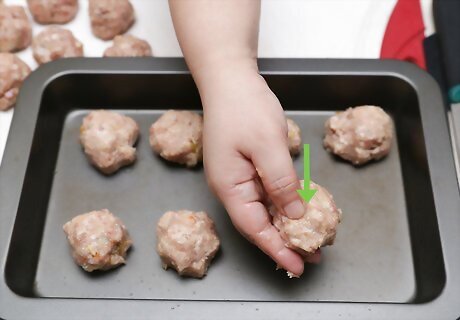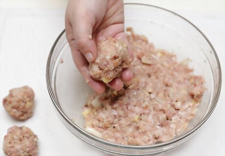 Form the mixture into 1 to 2-inch (2.54 to 5.08 centimeters) meatballs. A great way to make sure that each meatball gets the same amount is to measure everything out with a spoon. Roll the meat mixture into a ball-shape between the palms of your hands.