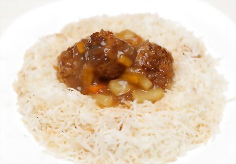Serve the meatballs over rice. White rice is the most common pairing, but you can also use brown rice if you'd like something healthier.