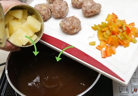 Add the pineapple chunks, meatballs, and green bell pepper, and simmer for about 20 minutes. Reduce the heat to low and let everything cook, uncovered, for about 20 minutes, or until the meatballs are heated and cooked through.