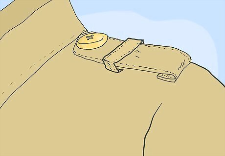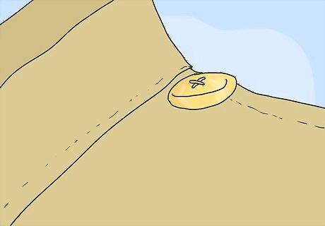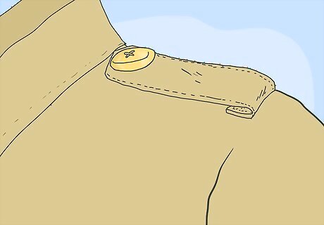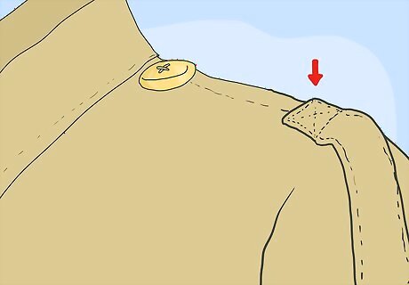 Make sure a gold, nub-style button is sewn to the shoulder beside the collar.