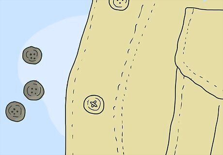 Remove any unnecessary buttons and zippers. For buttons, every button on the bodice (except for the pockets) are to be removed. If it's a jean-style button, place wire cutters around the button and cut it off. If it's a holed button, simply cut the threading and remove the button. Repeat this step for every unnecessary button.