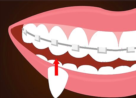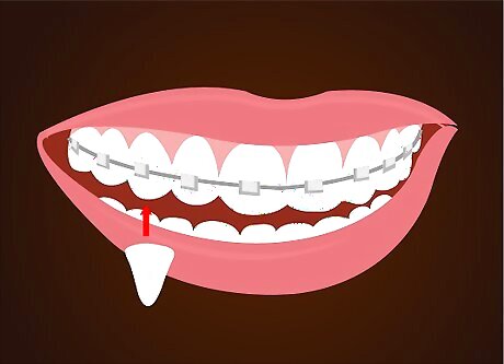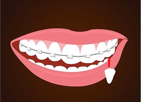 Then, push lightly over the tooth either just under the bracket on your tooth or over it. Shaping it over the bracket is very difficult to do, so avoid doing so.
