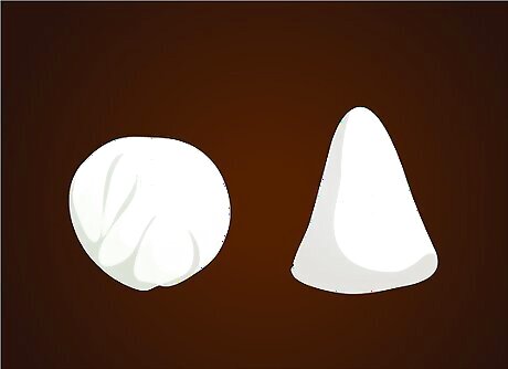 Pull off two small lumps clay of the same size. Take one and fashion it into a cone shape.