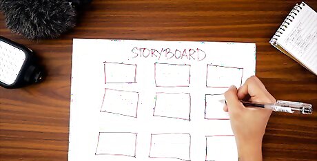 Storyboard your video. If your video includes more complex sequences, you may want to storyboard your video. This is the process of drawing quick sketches of each shot in order. This helps you decide what shots and edits your video is going to need.