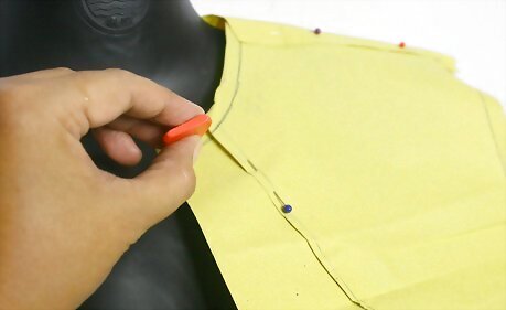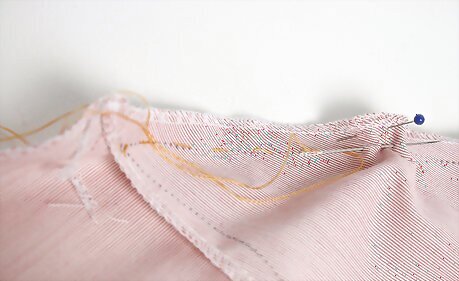 Remove the pattern from the model. Use tailor's chalk to mark all pinned or basted areas, if needed.