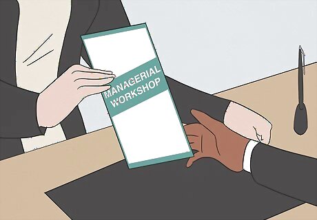 Invest in your star employees so they continue to grow. Your star employee doesn’t want to feel like their career is stagnant. Offer them opportunities for training and continuing education. Additionally, encourage them to keep setting goals and progressing in their career. When necessary, create a new role for your star employee so they don’t have to leave your organization to keep growing. For example, you might offer your star employee the opportunity to go to a week-long training workshop that can help them advance in their career. Similarly, you might offer tuition reimbursement for employees who take night classes at a local university.