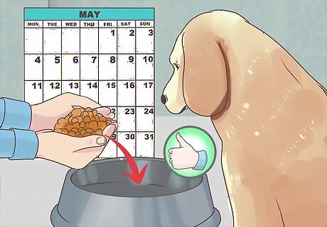 Maintain your dog’s weight. One way to help manage your senior dog’s diabetes is to keep their weight within a healthy range. You should make sure that your dog does not end up overeating. Obesity is common in older dogs, and this can make their diabetes worse. Older dogs need fewer calories than younger dogs. Their energy needs and activity levels decrease, so you should feed your aging dog less food than you used to. Many older dogs may eat out of boredom or because they forget that they have eaten. Keep your dog on a food schedule and watch their weight to make sure they don’t start gaining weight.