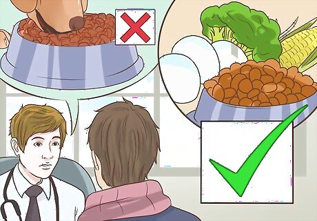 Consider changing your dog’s food. When your dog is older, you should make sure to feed them the best food you can. This is especially important when your dog has diabetes. When your dog has diabetes, the food should contain high-quality protein, fiber, and complex carbohydrates. The food may need to be low-fat, too. Talk to your vet about the best diet for your senior dog. Some senior dogs with diabetes may do well with a senior blend of dog food, while others may do well with a diet full of food prepared at home.