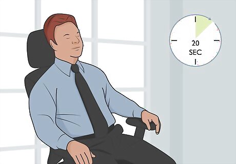Relax your muscles and breathe deeply to help yourself relax. Find a comfortable position in your chair at work and close your eyes. Start by tensing your feet and lower legs for 10 seconds, then relax the muscles for 20 seconds. Repeat this process by working your way up your body, going to your knees and thighs, hips, abdomen, and so on. Try out this relaxation method if you’ve just dealt with a stressful situation at the workplace. This is a great strategy to use if you’re ever feeling anxious. As you loosen your muscles, consciously bring the word “relax” to mind.